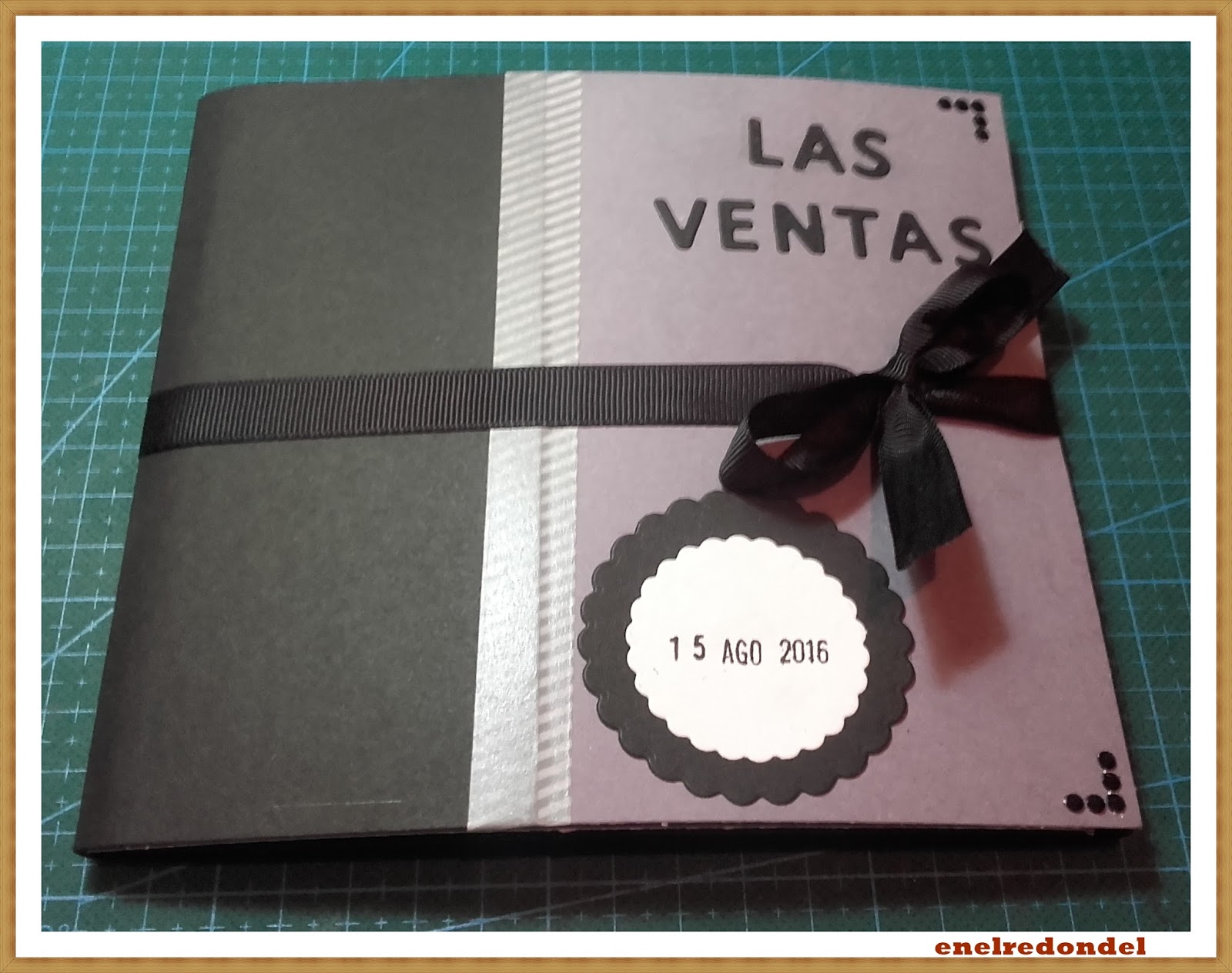 Lo cerré con un lazo negro que pegué en la contraportada con cinta de doble cara antes de pegar el papel decorado.